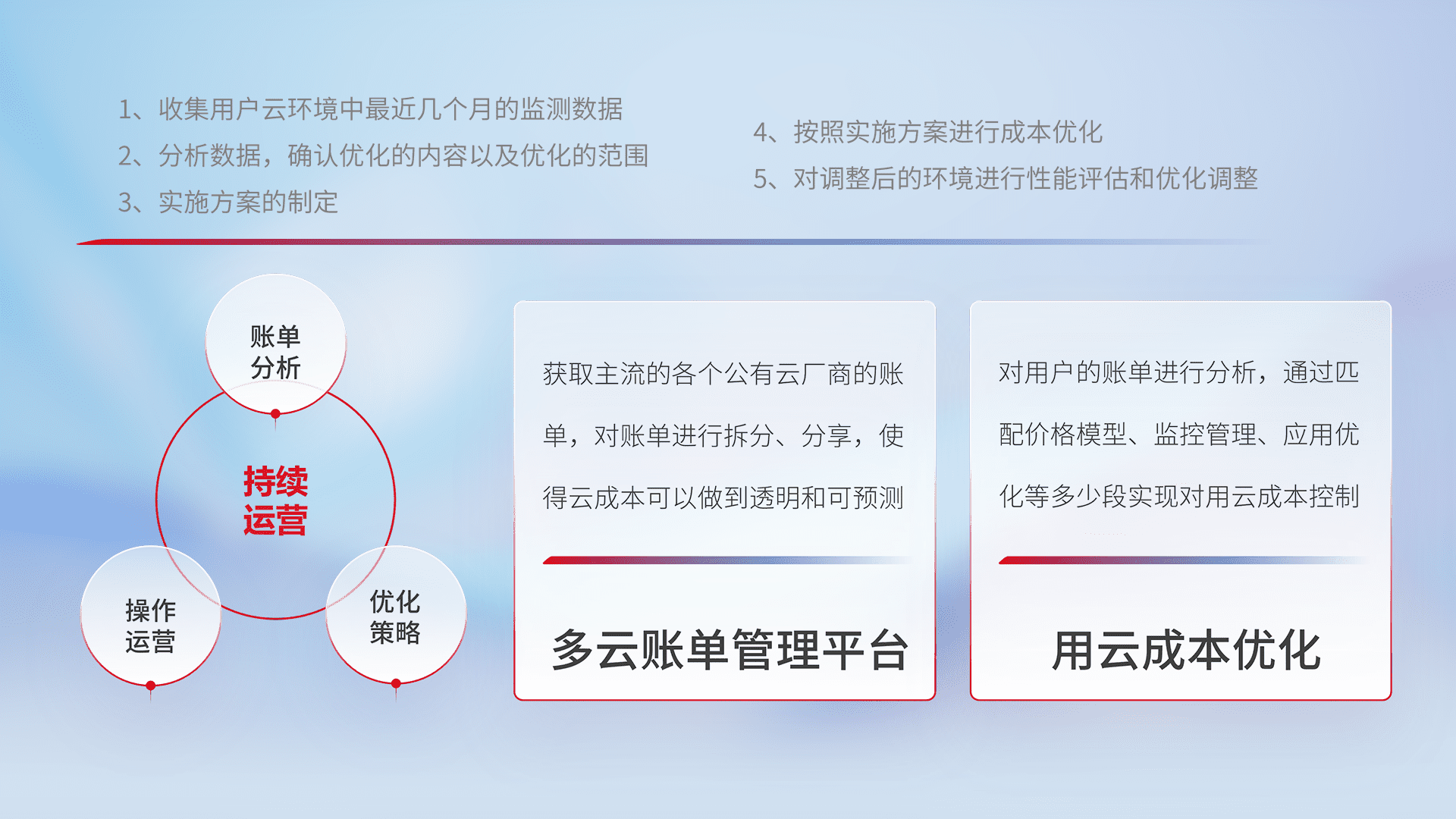 监控业务系统资源开销,,,对资源的消耗精确计量,,,,实现费用的透明化管理,,不断提升资源使用率,,,,调整资源购买方式,,,降低资源费用成本,,用云成本可预测、、、、用云费用可优化,,,云资源配额有据可依。。
